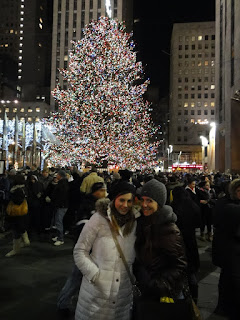 Először elmentünk megnézni a Flatiron Buildinget aztán meg elsétáltunk a Bryant Parkba ahol is korcsolyázni szerettünk volna de mivel kicsit későn mentünk oda hatalmas volt a sor és kivételesen aznap nagyooon hideg volt szóval nem akartunk ott sorban állni és fagyoskodni. Úgyhogy úgy döntöttünk inkább elmegyünk egyet ebédelni. (De nem kell aggódni a korcsolyázás is be lesz pótolva majd valamikor Januárban ;) ) A host anyuka ajánlott nekem egy jó kis éttermet, hogy nézzünk be. Sajnos az éppen nem volt nyitva de az utca másik oldalán találtunk egy nagyon jó kis francia kajázót. Jajj, annyira örültünk, hogy már valami rendes kaját ehettünk és nem csak a hamburger meg más gyorskaják...pfff Végre ettem rendes levest is nem csak a konzervből :D Ez után elmentünk SoHo-ba ami New York egyik városrésze és tele van üzletekkel. Susann vett magának egy márkás tasit amire majd azt hiszem én is spórolni fogok mivel nagyon tetszik nekem is! :) Aztán onnan elmentünk a 5th Avenue-ra ahol végigsétálva megcsodáltuk a karácsonyi díszítéseket. Közben be-betértünk pár üzletbe meg az estére már igazán be kellett szereznem egy sapkát mivel amint már említettem kivételesen nagyon hideg volt aznap. Sajnos rendes kesztyűt azt nem találtam mivel a többségben csak olyanok voltak ahol az ujjaim kint vannak :D Erre a host anyuka azt mondta, hogy ez azért van mert mindenki állandóan smsezik és ez praktikus (LOL Amerika :D) De visszatérve... aztán elmentünk megnézni a nagy karácsonyfát a Rockefeller Centernél. Hát ez valami gyönyörű volt!! :)) Azonnal a Reszkessetek betörők második része jutott az eszembe :D Annyira jó érzés, hogy pár évvel ezelőtt még csak a tv-ben néztem ezeket a helyeket most meg ott voltam én is élőben :)
