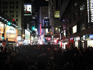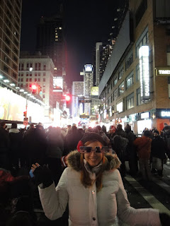 Délután 1-kor indultunk útnak Elianával és Sandrával (azt hiszem még régebbről emlékeztek rá- spanyol csaj) kocsival. Sandra veztetett Weehawken-be mivel tud ott egy helyet ahol ingyen lehet parkolni és aztán onnan busszal mentünk New Yorkba ami csak olyan 10-15 percre volt. Még úgymond időben is érkeztünk csak aztán még mindegyikünk el akart menni wc-re mielőtt beolvadunk a tömegbe hehe...nah de hát erre valami 1 órát kellett várnunk mert akkora volt a sor pfff :S Aztán elindultunk a szokásos úton a Times Square felé de persze az már le volt zárva. Ez után csak futkostunk blokkról blokkra azt keresve, hogy még hol van nyitva és hogy hol tudnánk bejutni... Sok futkosás után végre találtunk egy utcát ahol azt mondták, hogy olyan 10 perc múlva kinyitják és beengednek egy pár embert...hát szerencsére mi még bejutottunk és az 52St Broadway-nél ragadtunk le. Innen már tovább nem mehettünk egy darabig.. Az elején kicsit kisebbségi érzésem volt attól a sok embertől :S de aztán hála az égnek jó pár ember úgy döntött, hogy inkább haza megy :D Igaz, hogy nem volt a legjobb kilátásunk mivel a "gömb" mögött voltunk de aztán úgy döntöttünk mi maradunk. Aztán nagy kivetítőről néztük a történteket meg a koncerteket :) Kicsit olyan volt mintha egy utcabál lenne mivel leültünk a földre, táncolgattunk, énekelgettünk meg minden. Szerencsére az idő is decemberhez képest kimondottan jó volt. Csak a tudat, hogy ott voltunk már elég volt nekünk a jókedvhez :)) Annyira jó érzés volt tudni, hogy a sztárok csak pár blokknyira voltak tőlünk. A fellépők közt volt Drake, Justin Bieber, Pitbull, Lady Gaga és még sok más. Szóval a hangulat az megvolt :) Aztán olyan éjfél előtt már elkezdtünk spegulálni, hogy jó lenne kicsit előbbre jutni...de csak így is egy utcával jutottunk előbbre az 51St-ig. Tele volt rendőrökkel az egész város én még ilyet nem láttam...az emberekről persze nem is beszélve. Aztán innen számoltunk vissza és a gömbnek legalább a tükörképét láttuk a másik épületről aztán meg a nagy tüzijáték....egyszerűen leírhatatlan ezt látni kell, nagyon szép volt!!! :) Alig pár perccel éjfél után a rendőrök már ürítették is ki az utcákat úgyhogy mi csak annyira mentük előbbre, hogy csinálhattunk pár képet aztán mennünk is kellett. Ez után már nagyon éhesek voltunk szóval csak beültünk egy McDonald´s-ba (tudooom de ez volt a legközelebb :D) aztán meg indultunk is a buszhoz. Ahol is eléggé örület volt szintén ugyanis mindenki haza akart már menni... De szerencsére mi a második vagy harmadik buszra fel is fértünk aztán indultunk is haza kocsival. Hazafelé aztán már Susann is csatlakozott hozzánk egy német barátjával mert sajnos a Times Squaren nem tudtunk találkozni mivel ők később jöttek. Az autóban el is aludtam kicsit mert annyira fáradt voltam, de még ez után nekem kellett haza vinnem Susannékat is szóval csak valami 5-kor kerültem ágyba.